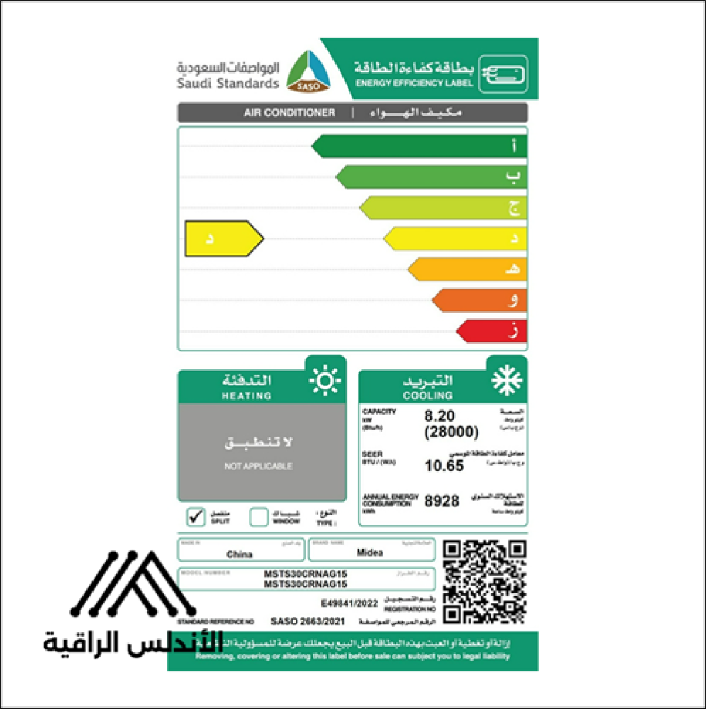 - كفاءة استهلاك الطاقة – فئة (د): يتميز بتوفير استهلاك الطاقة مع أداء تبريد عالي.