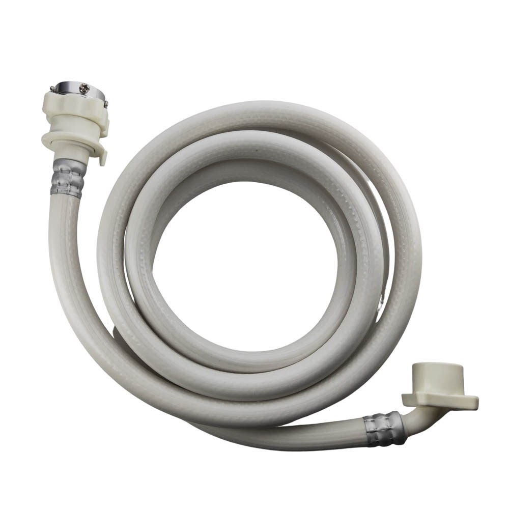 4- تركيب خراطيم التزود بالمياه مع التأكيد من تركيبها بشكل صحيح بحيث الطرف المنحني من الخرطوم هو الذي يتم ربطه بالغسالة والطرف الآخر يتم ربطه في مصدر المياه الرئيسي.